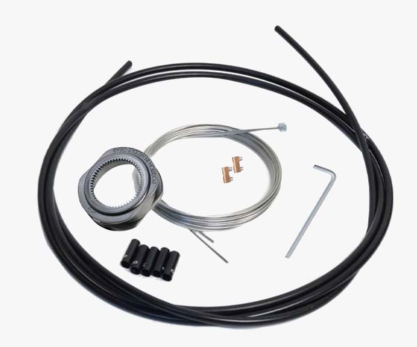 Vorgefertigtes Set, bestehend aus 1 x Schaltboxring, 1 x Universalzugrolle, 2 x Schaltzüge, 3 x Befestigungsschrauben.